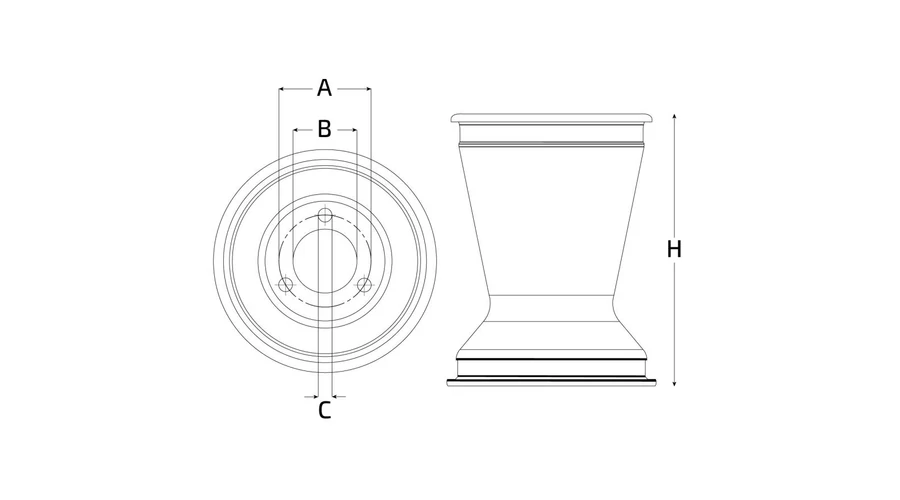 Méretek: Ø A: 58 mm Ø B: 40 mm Ø C: 8,5 mm M: 210 mm